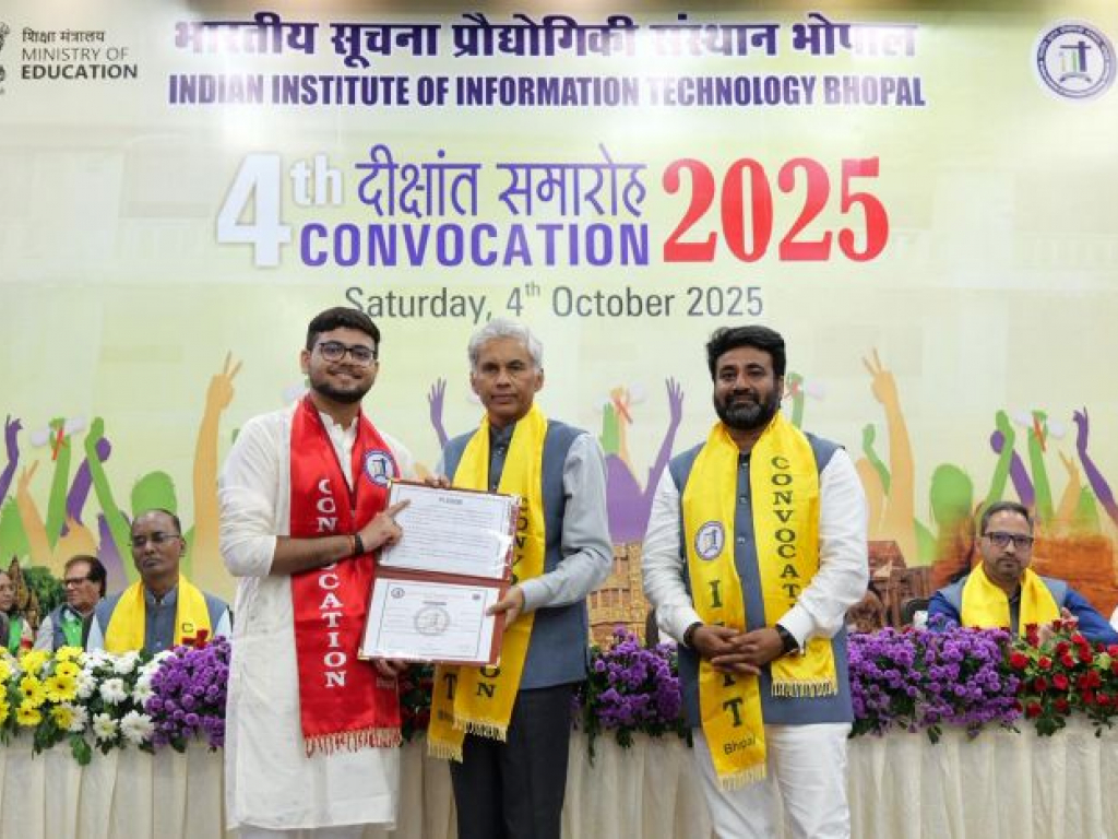 आज 4 अक्टूबर शनिवार को भारतीय सूचना प्रौद्योगिकी संस्थान (IIIT) भोपाल का चौथा दीक्षांत समारोह सिविल सभागार में हुआ। इस कार्यक्रम में साल 2025 में कंप्यूटर विज्ञान(CSE), इन्फॉर्मेशन टेक्नोलॉजी(IT)और इलेक्ट्रॉनिक्स एवं कम्युनिकेशन इंजीनियरिंग(ECE) के 182 छात्रों को बीटेक की उपाधियां प्रदान की गईं जिसमें 47 छात्र ECE के, 66 छात्र IT के और 69 छात्र CSE के रहे।